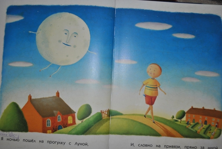 1. «Прогулка с Луной» Кэролин Кёртис, иллюстрации Элисон Джей. Изд. «Поляндрия», 2013. Многие детки любят искать луну в небе, моя так точно, этот интерес и лежит в основе стихотворения. Читала в отзывах, что - странное стихотворение. По мне так ничем не хуже стихотворения «Дом, который построил Джек». Ритм очень похож, тоже есть повторяющиеся строчки. Приятные пастельные тона у иллюстраций. Бестселлером книга не стала, но когда брала ее в руки, ребенок говорил: «Мама, почитай про Луну».