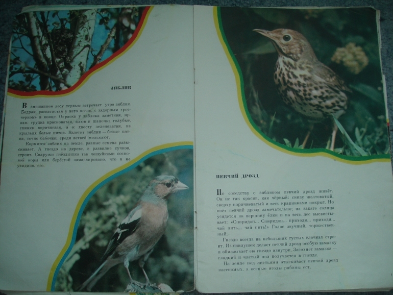 "Птицы в нашем лесу" выглядит плоховато. Как будто её в своё время старались заклеить чем-то вроде столярного клея, но внутри всё получше. Не выброшу, потому что нравится сыну. До полноценной орнитологии он не дорос, про клювы и строение тела ему неинтересно, а простые рассказы про то, как птицы выглядят, что едят и строят гнёзда очень востребованы.
