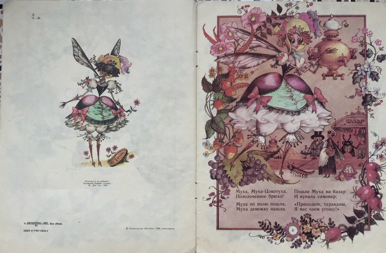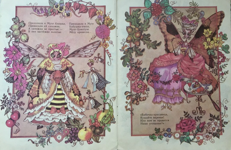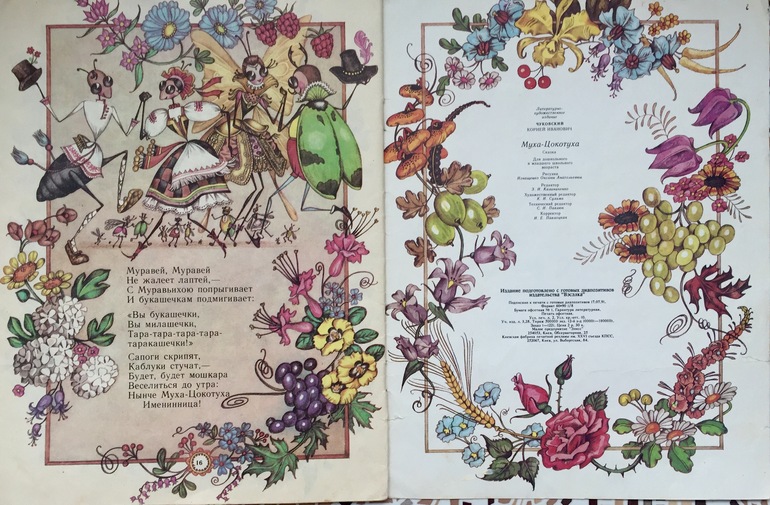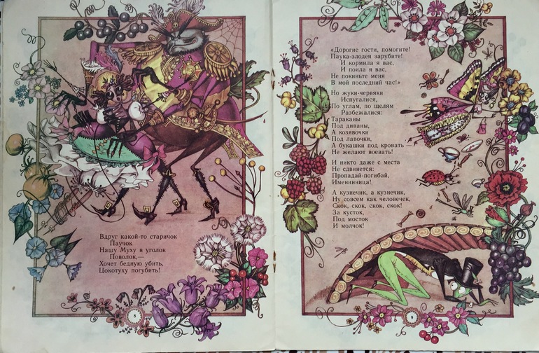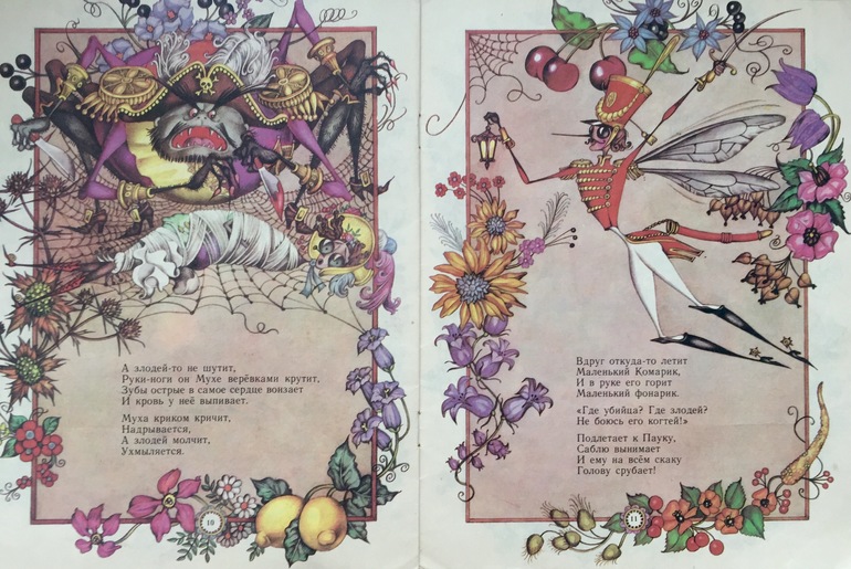 Увидела книгу у букинистов - не сдержалась и купила. Не знаю как понравится она моему любителю машинок. Пока сама смотрю-ностальгирую. Это какой-то праздник ягод и цветов! Часто с неё срисовывала цветы для школьных стенгазет или самодельных открыток. А наряды какие у всех этих жучков-паучков! Наряды моих бумажных кукол (помните рисовали, прислоняя бумажный лист к окну?) были самые красивые ))))