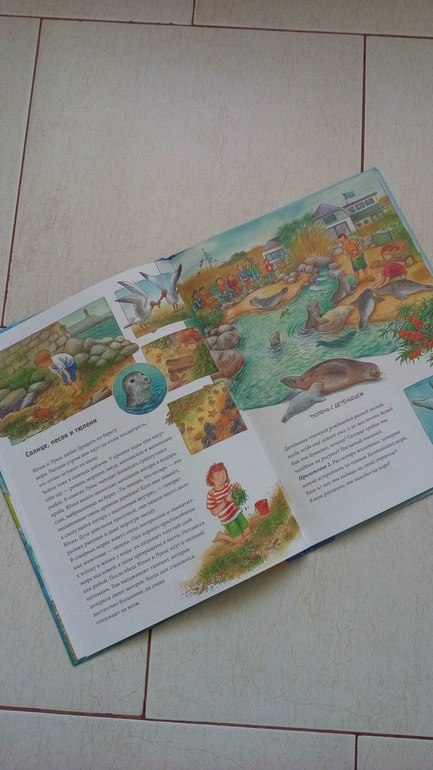 Купила, как альтернативу книжке гляделке "На море" из серии "Что"Зачем?Почему", которую нигде уже не найти. Дочь сразу спросила -а где окошки? Здесь слишком много текста, я считаю, и кадрированные картинки, которые не дают полную картину, а лишь сбивают столку малыша. Пока плюсов не нашла, решила больше ничего из этой серии не покупать.