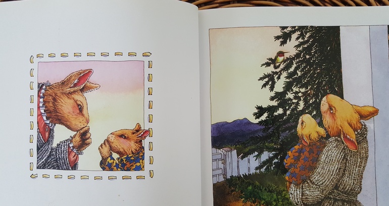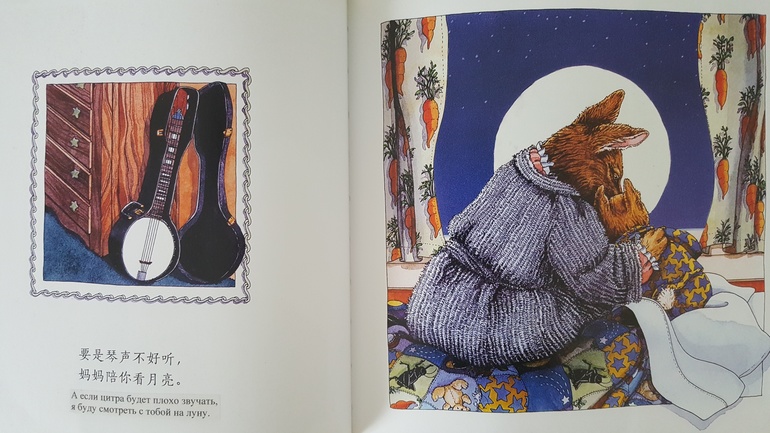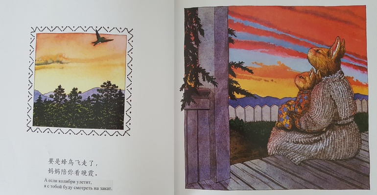 А вторая книжка с английским названием "Hush Little Baby" ("Малыш, потише"), наверное, не многим известна. Подробнее о книгах автора Сильвии Лонг можно почитать . Книжка неожиданно для меня самой дочке понравилась. Эта книга была написана автором на основе народной песни. Задача книги - обратить внимание малыша на красоту природы, которую можно почувствовать в полной тишине. Книга очень нравится моему ребенку, возможно, потому что передает тонкую связь матери с малышом. Вот некоторые иллюстрации: