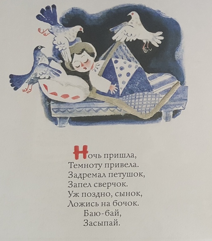 Также читали сказки из сборника "Запел петушок". А двумя потешками из этой книги начинается и заканчивается наш день ("Ночь прошла..." и "Ночь пришла..."):