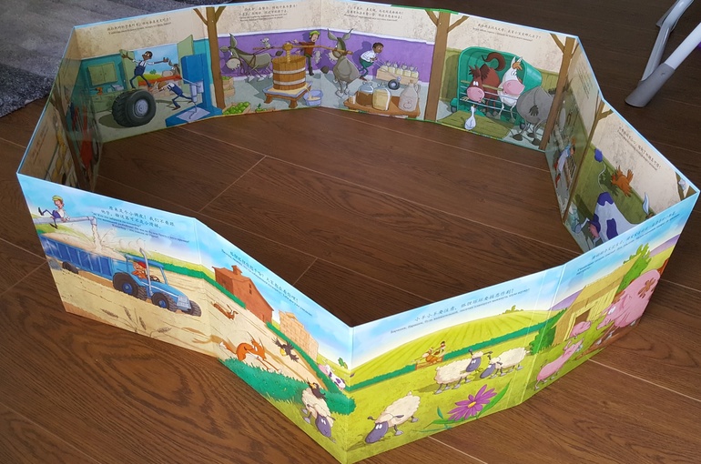Читали вот такую интересную 3D- книгу в китайском переводе (автор иллюстраций - Bill Bolton). Книга из плотнейшего картона раскладывается по кругу, ребенок вместе со взрослым может расположиться в центре и рассматривать иллюстрации, прослеживая сюжет. Иллюстрации также одна продолжают другую, действие разворачивается перед глазами ребенка. Из минусов книги - содержание немного отстает от воплощения. Хотя не обязательно эту книгу использовать только по назначению. У нас она уже присмотрена и для игр.