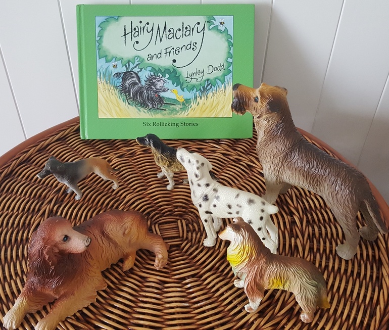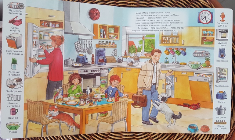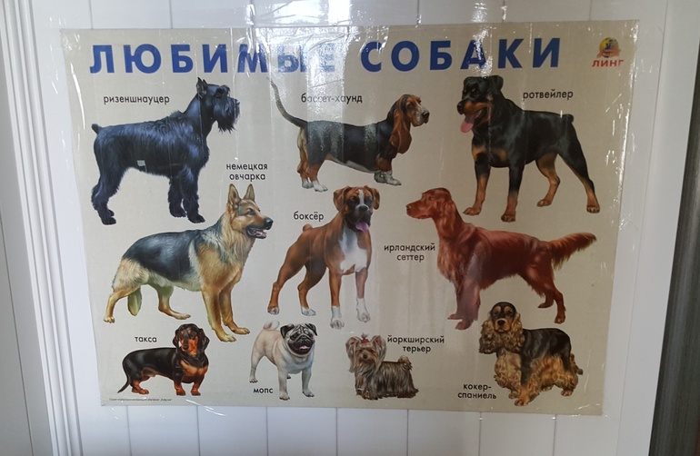 Обыгрывали много раз первую историю о Храбром Пушке (подробнее о шести историях писала тут). Получается весело, ребенок вовлечен в процесс, расставляет собак, а потом помогает им спрятаться от кота. Правда, не все наши породы совпали с книжкой: