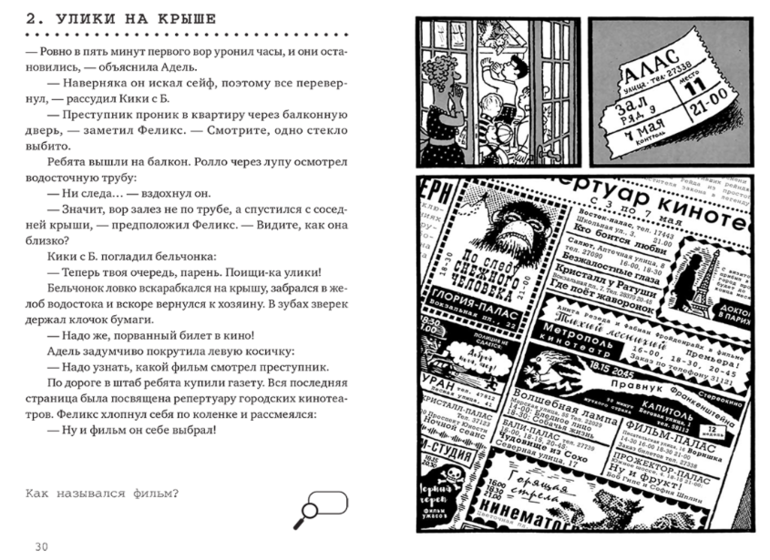 В каждой истории-загадке есть черно-белая иллюстрация, которая помогает ребенку развивать внимательность.