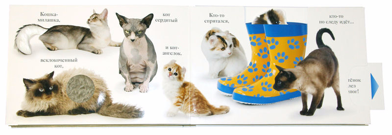 Книга «Мяу» предназначена для малышей, которые с помощью родителей осваивают этот мир. В этой книге дети могут погладить кошечек, поиграть с ними в мячик, а также узнать из остроумных стихов, почему кошки бывают такие разные.