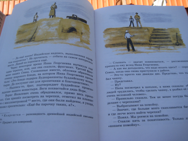 Очень редко кому удается гармонично сочетать познавательное и художественное содержание в одной книге. Фингарет удается превосходно! И через разговоры (например, Севки Клюева с отцом и с археологами), и через монологи (рассказ усто Саида), и через описания. Причем, в таких деталях! Приведу кусочек - про чаепитие в чайхане:
