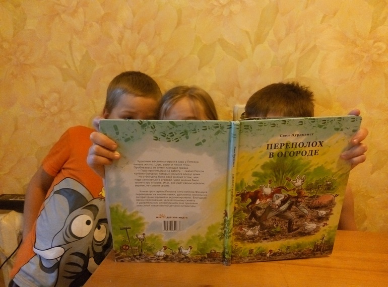 Два раза за месяц были в библиотеке, где Настя присмотрела книги Свена Нурдквиста. На полке стояли три книжки про Петсона и Финдуса. Вот их и прочитали Настя, а потом Тима. Потом сменили на другие две книги про Петсона - на этом ассортимент библиотеки этого автора закончился.