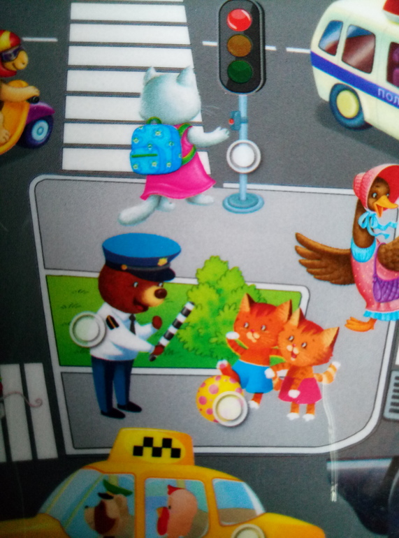 В режиме Звуки называется предмет и звук, например Скорая помощь и сирена, а при нажатии на котят Будьте внимательно, мяуканье и звук тормозящей машины.