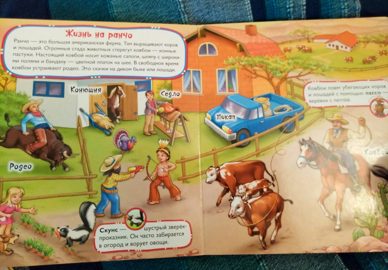 Америка из серии Вокруг света. самый пик любви к этой книги совпал с днем рождения дочери, и все гости уходили, напевая Вот Америка большой континент) потому что Денис слушал эту песню бесостановочно) помимо этой песенки, очень прилипчивой, скажу я Вам ) есть и несколько звуковых кнопок, скажем так, с характерными для Америке, ну и не только, звуками) Рассказывается об основных достопримечательностях. В книге представлены все первые ассоциации, возникающие при слове Америка)