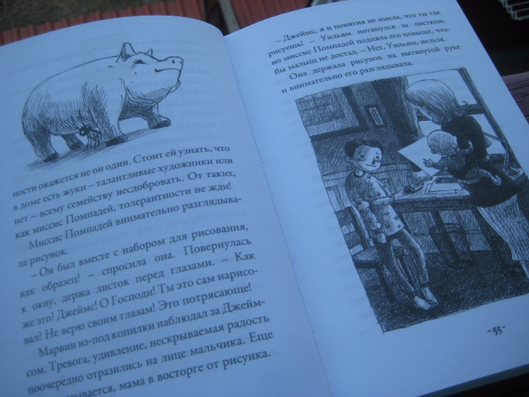 Очень благодарна Юлии за пост и за рекомендацию, книга и впрямь великолепная! Она не просто про жуков, про их жизнь и т.д., и даже если сказать, что это книга о взаимоотношениях жуков и людей - это будет не совсем точно. Нет, здесь эти взаимоотношения подняты на необычайную высоту! Достаточно сказать, что в деле замешан знаменитый музей Метрополитен и работы Альбрехта Дюрера, чтобы понять, что здесь кроется нечто из ряда вон выходящее... Так и есть, ведь Марвин - не просто жук, у него есть дар - создавать настоящие художественные шедевры, во-первых, и талантливо подражать великим, во-вторых... С этого все и начинается... Сын прочитал эту книжечку (а она хоть и толстая, но небольшого формата) за день, после чего сказал: "Чувствую, буду перечитывать еще не раз..." Пожалуй, и я могу сказать то же самое. Восторг, сплошной восторг!