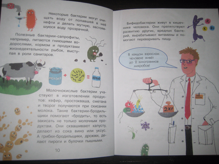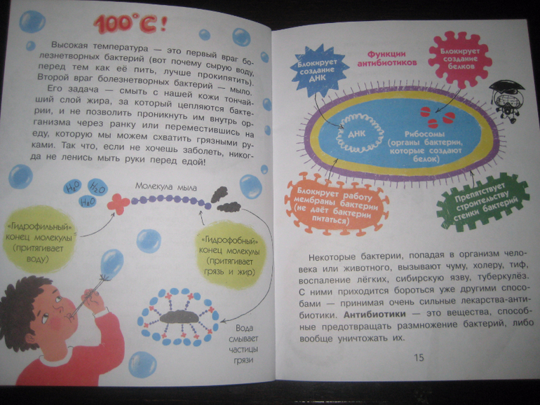 На мой взгляд, одна из самых интересных и удачных книжек серии. Написано хорошо, связно, понятно, даже взрослому прочитать будет интересно (я-то и вовсе с удовольствием прочитала!). Здесь рассказывается о бактериях и вирусах, об антибиотиках и бактериофагах, о том, что такое иммунитет, как побороть ОРВИ и почему не нужно сбивать температуру до 38 градусов - в общем, обо всем том, с чем каждый из нас сталкивается время от времени.