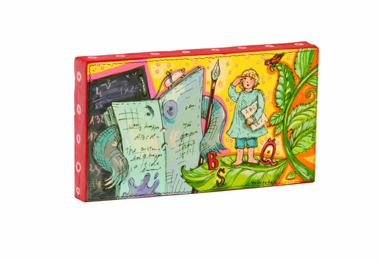 А сейчас предлагаем посмотреть на фотографии досок с иллюстрациями из книги. Ведь рисунки были выполнены не на бумаге, а именно на досках по специальной технике левка́с. С ее помощью расписывали иконы еще в средневековой Руси!