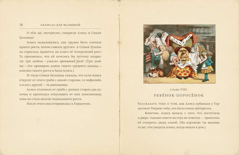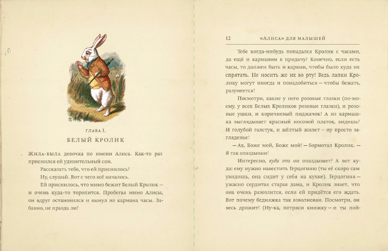 Спустя четверть века после первого издания бессмертной сказки Льюиса Кэрролла «Приключения Алисы в Cтране чудес» сам автор пересказал её для маленьких читателей - «от нуля до пяти». Сэр Джон Тенниел, на основе своих черно-белых иллюстраций к книге об «Алисе», нарисовал новые, увеличенные, слегка изменённые цветные иллюстрации, а известный гравировщик викторианской эпохи Эдмунд Эванс создал на их основе деревянные гравюры и отпечатал с них цветные иллюстрации.