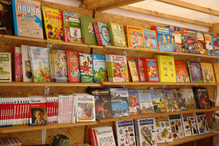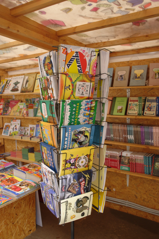 Стенды с детской литературой! Книги запаяны в фабричную пленку, книги с обложками голышами... Полистать, поразглядывать...