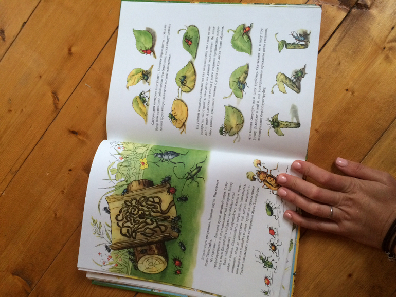 Эта одна из тех немногих книг, которые мы читаем с 2,9 и она актуальна до сих пор. Конечно, стоит отметить сезонность. Раз книга о насекомых и животных, то и читаем мы ее обычно летом.
