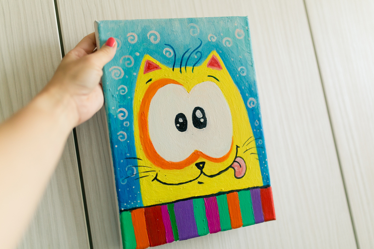 Зато есть кошачьи картины. Это наши "семейные портреты" :-), от которых я в восторге и по стилю рисования, и по цветовой гамме. Взрослого кота с кошкой нарисовала моя клиентка, я в них сразу узнала нас с мужем :-) А маленького котика дозаказали, когда узнали, что ждем первого сына.