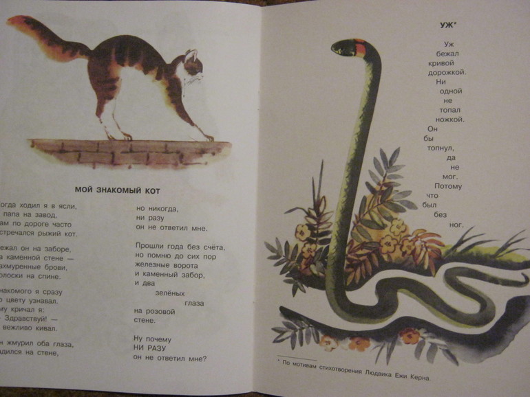 Здесь я вообще-то ужа фотографировала - очень уж стихотворение про него нам с детьми нравится, но вот и кошке повезло )