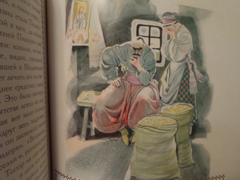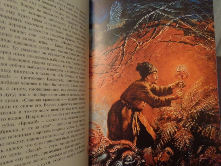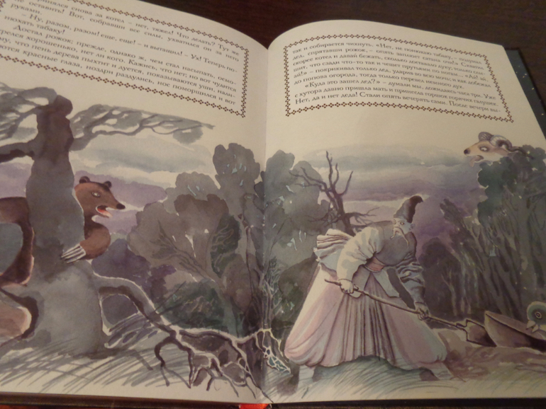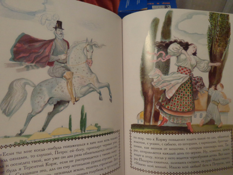 Вот такая коллекция поселилась на моей полочке) Могу сказать, что всё, к чему у меня лежала душа - всё куплено, и мне не о чем больше мечтать! На сегодняшний день я больше ничего не хочу! Но вот если кто-то выпустит еще что-нибудь занимательно отрисованное - с радостью рассмотрю возможность покупки, потому что Гоголя много не бывает! Для тех, кто еще не всё купил или не определился, предлагаю отправиться в путешествие по иллюстрациям "Вечеров..." Будет много фото и мало слов. Попугаемся?)