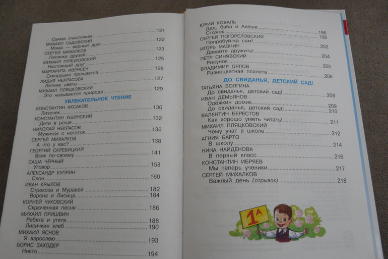 Тут идет знакомство с баснями И.Крылова,Куприн ,Есенин ,Блок и стихи на прощание с детским садом