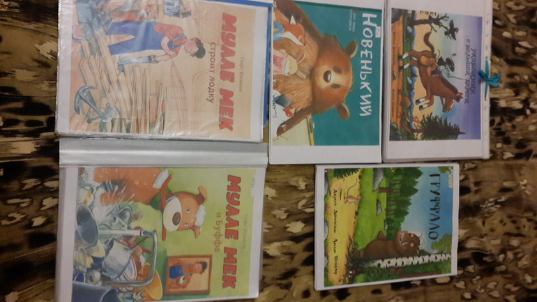 Ну стопочками лежат или на икеевский полке или в специальной коробке для чтения, не всё большие, есть половинки. Но совсем мелких почти нет. Покупных тоже много) такого же формата.