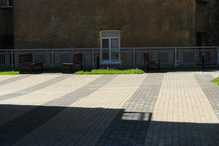 Отбрасывая тени, скамейки ждут встречи с авторами и художниками...