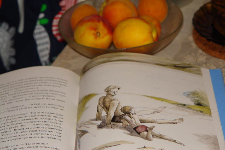 "Голубую чашку" заказала сразу по приезду! Так давно мечтала встретиться! Это моё одно из любимых произведений! Оно какое-то, обо мне, что ли! Маруся - это я, Светка - Кристинка, а папа - это наш папа) Они разбили чашку, а я на них разозлилась, было и такое)))И пошли свет повидать... С особенным трепетом относилась к Фёдору, мальчишке без штанов, перемазанному в малине) Думала, будет у меня мальчишка -Федор) Получился мальчишка -Рося)
