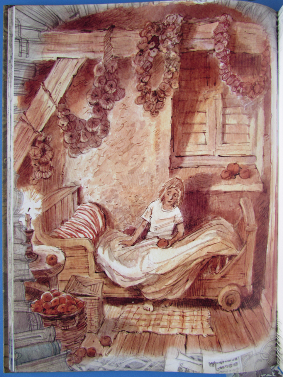 Ну и иллюстрации Вадима Челака. Рисунки крупные, на каждой странице. Частенько почти на весь разворот.