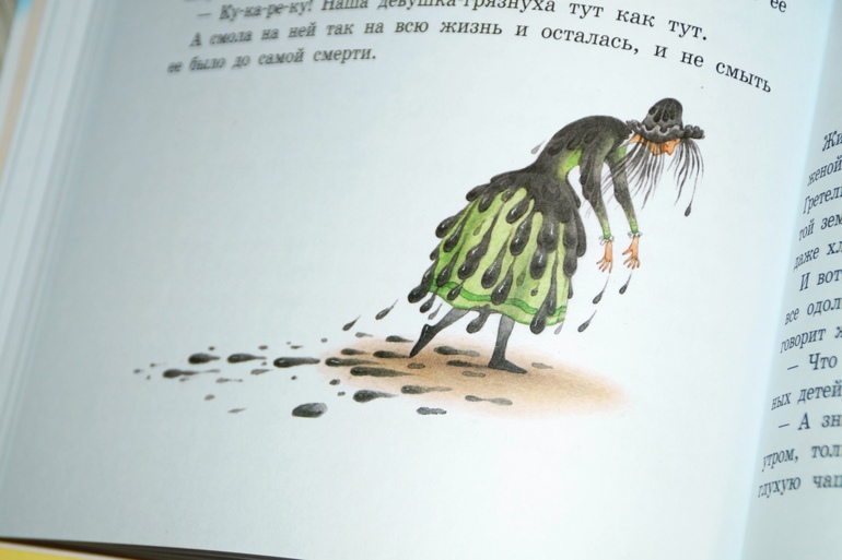 Немного удивляет, что у сказки "Госпожа Метелица" нет изображения самой зубатой Метелицы, но зато есть облитая смолой лентяйка.