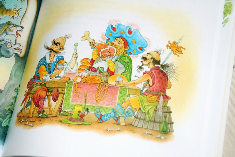 Ну и теперь о самом важном для меня в детских книгах - иллюстрации. Мне они очень и очень панравились, что бывает крайне редко в отношении братьев Гримм. А все, наверно, потому, что сказки братьев рассчитатны все-таки больше на подготовленного читателя, поэтому и иллюстрации в книгах соотвествующие. А вот в этом издании они отлично подходят для дошкольников и младших школьников. Художники, кстати, Д. Махашвили и Ю. Панипартова, мне ранее были неизвестны.