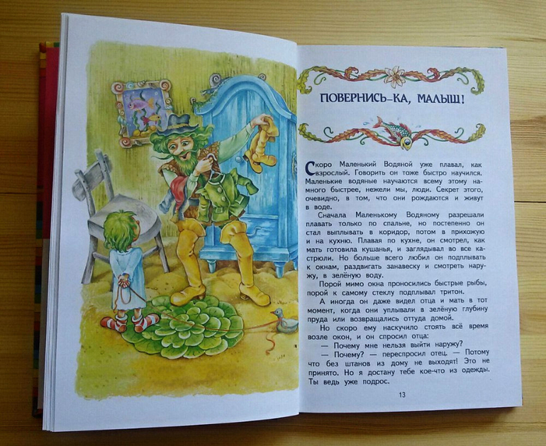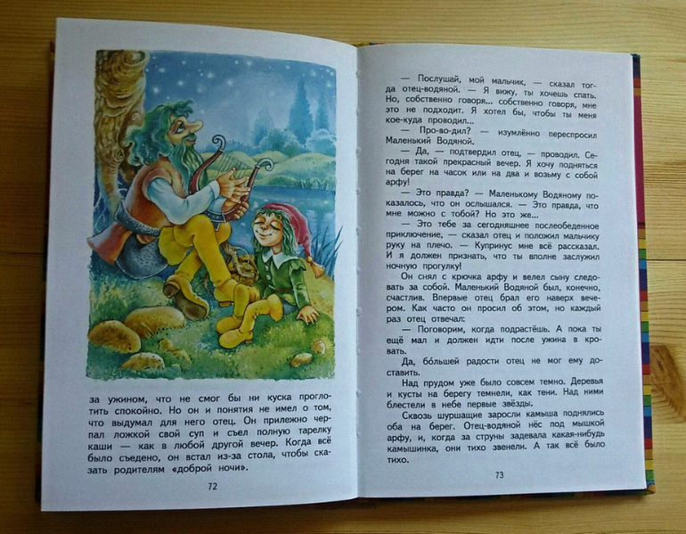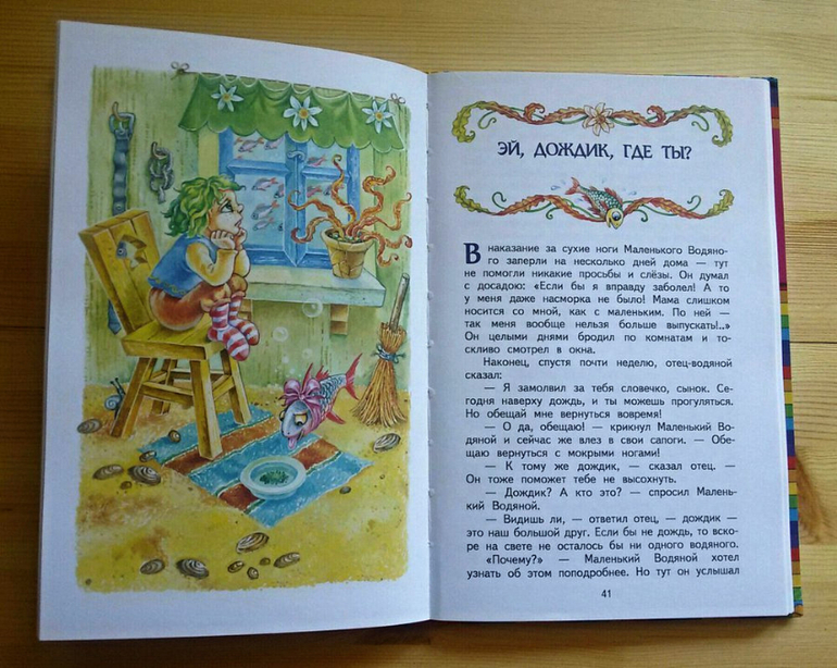 Вот честно, перечитывать я ее не хочу, хотя под конец были главы, которые мне понравились. По ходу чтения дочка задавала безумное количество вопросов, что обычно свидетельствует о проявлении интереса к книге. Очень долго она пыталась понять как водяной дышит под водой, почему он заболел, когда его ноги стали совсем сухие и почему они едят такую гадость. Но потом приняла это как данность, заключив, что у них все ни как у людей.