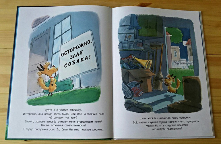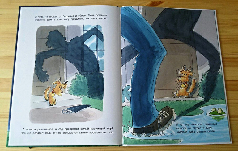 Смешная история о маленькой собачке, которой поручили охранять дом. Дочке рассказ приглянулся, мне, в принципе, тоже понравился. Единственное, что меня смутило, слово "хозяева" используется только один раз, дальше употребляется "человечий папа", "человечья мама", "человечья сестра", "человечьи родители". Лично мне это режет слух, поэтому при чтении, я везде меняла за "хозяин", "хозяйка", "хозяева". В остальном к книге никаких претензий, читали часто, юмор дочка оценила.