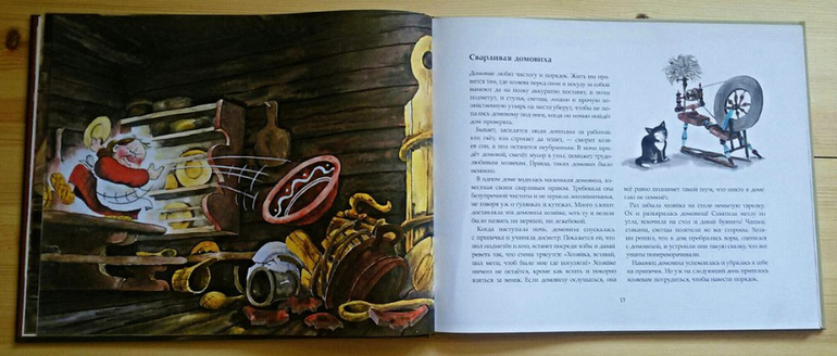 Дочке больше всего приглянулся рассказ про сварливую домовиху, которая любила чистоту и порядок. Ночью она учиняла в доме жуткий разгром, если хозяйка забывала на столе немытую тарелку.