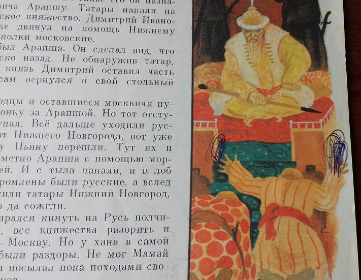 Надеюсь, кому-то, кроме меня, было весело смотреть эти иллюстрации. Родители! Не ругайте детей за разрисованные книги и ни в коем случае книги эти не выбрасывайте. Когда-нибудь они расскажут вашим внукам о том, как их мамы и папы были маленькими.