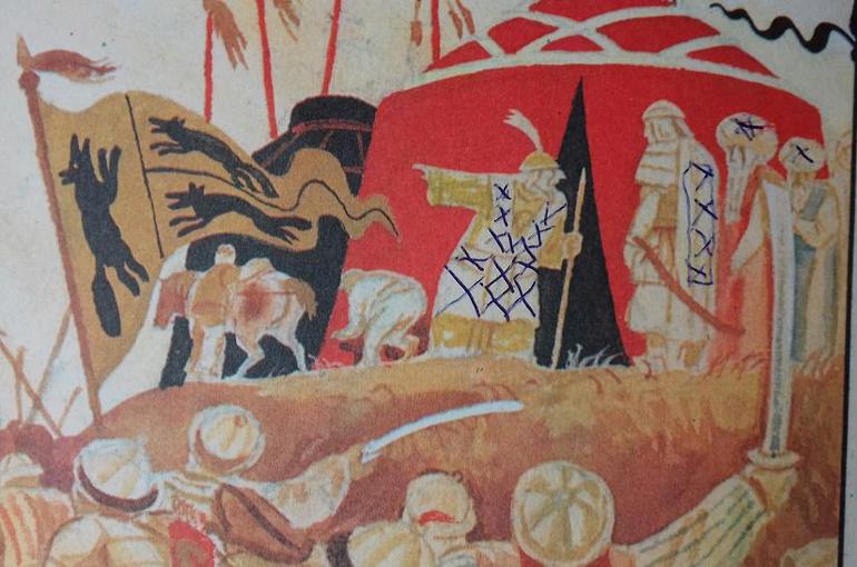 Интересное начинается, как видите, уже с обложки. Мы же победили, поэтому в руках у воинов - цветы!