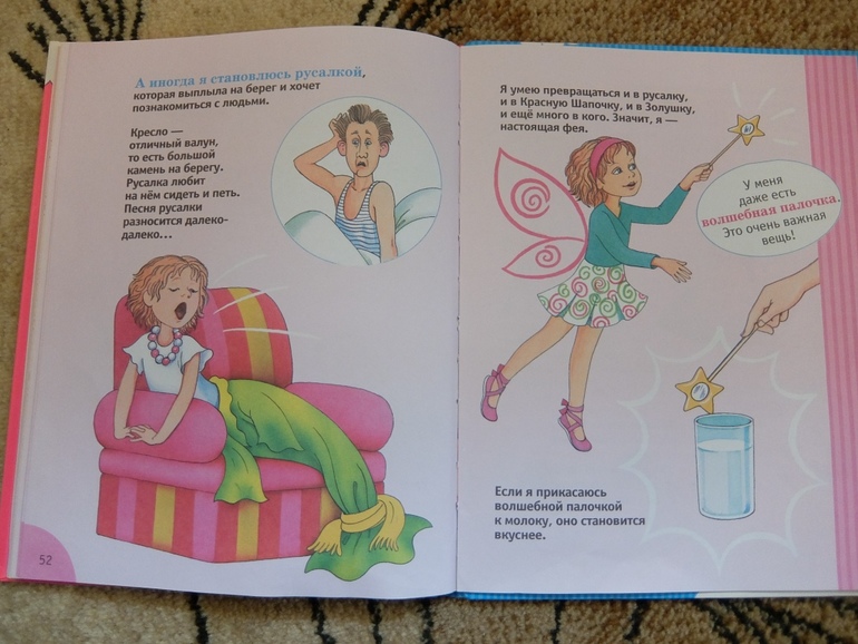 Дочка полюбила их с первых же страничек. В них очень бережно, деликатно и с юмором описан мир маленькой девочки, в котором она веселится, плачет, играет и познаёт мир. Книжка читается так, как будто ребёнок сам её рассказывает. Вот некоторые из страниц: