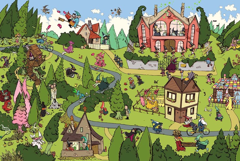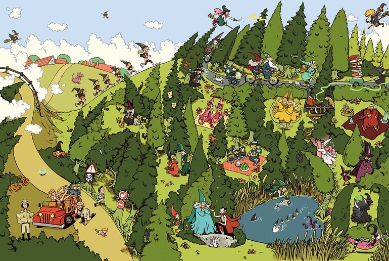 Ещё в этом лесу можно встретить влюблённого вампира, благородного скелета и семью рассеянных волшебников. Здесь есть своя школа колдовства, есть рынок, где ведьмы покупают травы и сушёных лягушек для своих зелий, есть магазины, где продаются нарядные мантии и остроконечные шляпы и быстрые мётлы. Ведьмы устраивают пикники, ходят друг к другу в гости, занимаются спортом, делают покупки, варят зелья и колдуют, а ночью слетаются на большой праздник с салютом и танцами.