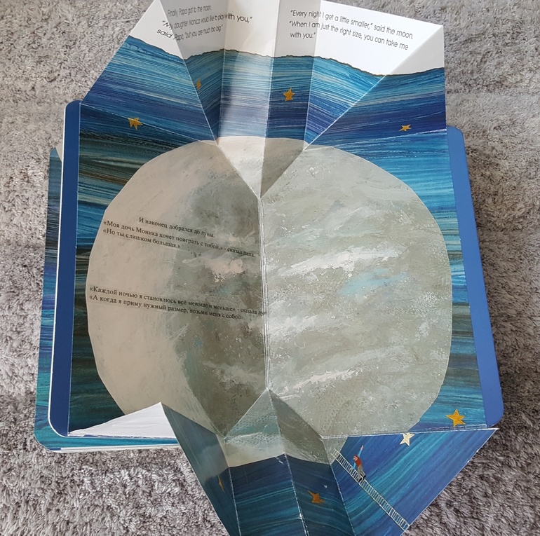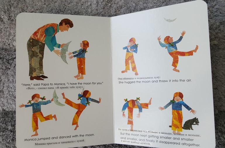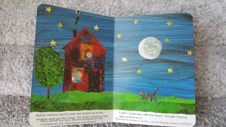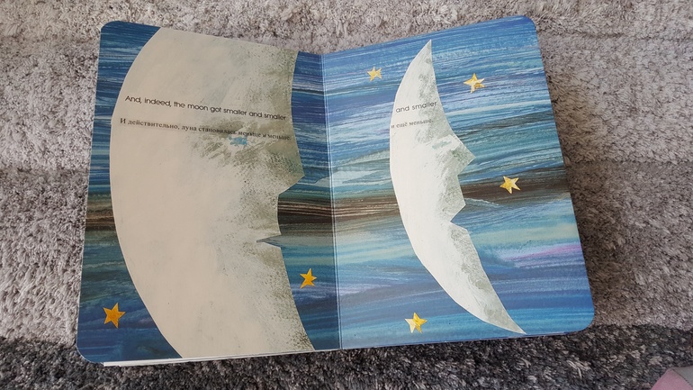 Зачитывали книжку Эрика Карла ''Papa, please get the moon for me''. В ней, как и в других книжках этого писателя, присутствует познавательная сторона. Например, из этой книжки мы узнали, что луна способна нарастать и уменьшаться.