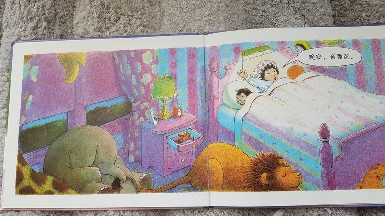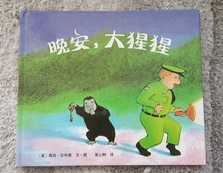 Книжку "Спокойной ночи, горилла" купила в китайском маленьком супермаркете за 40 рублей. Читали и на китайском, и на русском языке. Любит слушать именно в папином исполнении.