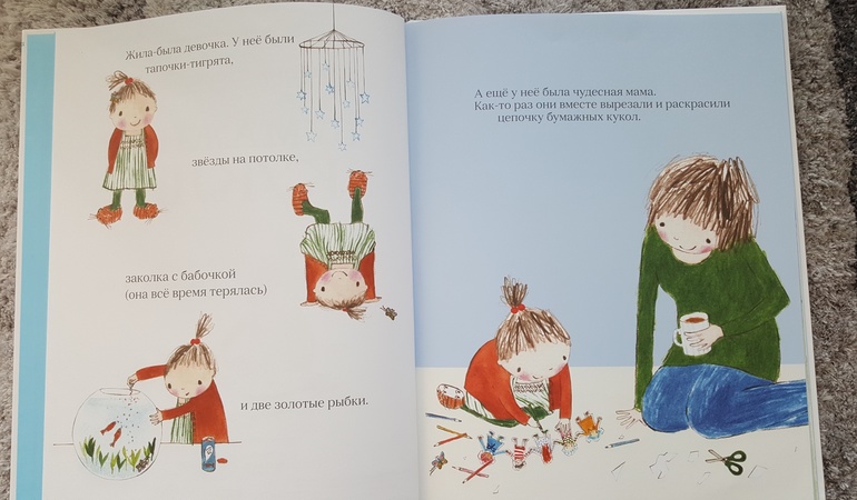 А сама книга "Бумажные куклы" мне понравилась даже больше, чем "Хочу к маме". Концовка, конечно, больше рассчитана на взрослого читателя, и понять эту трогательную историю ребенку еще долго будет не под силу. Ну а все, кроме последних строк, просто ошеломительно действует на мою дочь. Теперь это моя любимая книжка.