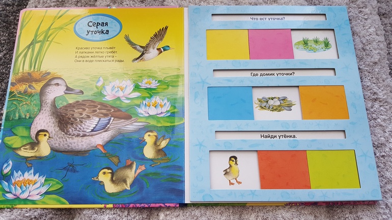 Вот такую книжку просмотрели несколько раз. Двигая окошки, нужно найти ответ на предложенный вопрос. При покупке подкупило слово "окошки", а в целом, книжка не очень понравилась.