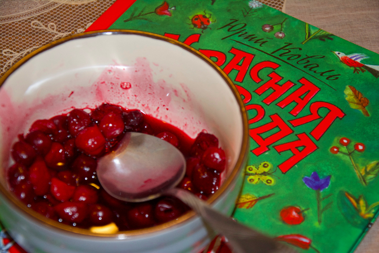 Я очень люблю замороженную вишню, мне кажется, никто не любит так, как я люблю! Размораживаю её в микроволновке, чтобы чуть горячая, морщусь от кислости, заедаю фруктами-смузи из другой миски! Люблю фрукты! Это в сто раз вкуснее, чем шоколад и печеньки! Вышкрябываю до дна и о боги, делаю то, что не позволяю детям - дочиста вылизываю миску!