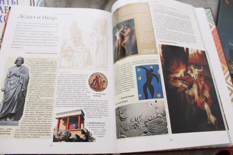 Ещё одна книга зачитана от и до это "10 картин и Красный мяч". Мальчики очень любят её смысл примерно такой же как у Кати рассказывается Понемногу о каждой картине только в стихах. Очень нам понравился "Икар" Матисса. Мы даже сделали аппликацию на тему большого парня, а потом задались опросом кто такой Икар. И тут нам понадобились Мифы. А там мы опять встретили нашего любимого Врубелевского Пана.