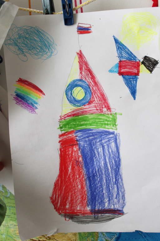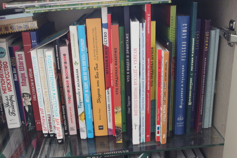 Не удивительно, что Дима говорит, что будет художником. Но дети растут и интересы меняются и на этот случай у мамы принесены книги по архитектуре, музыке, футболу и биологии, целая полка книг о космонавтике и астрономии и математике...