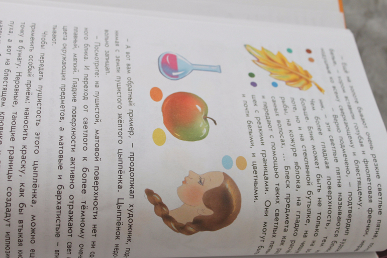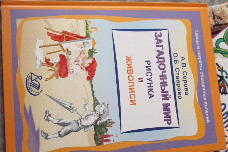Отдельно стоит упомянуть. Загадочный мир рисунка и живописи . Доступно рассказано о основных аспектах ресунка. Цвета, перспектива, блики, Золоте сечение. Чесно говоря, покупала эту книгу "на по позже" но Дима увидел радугу (а это большая любовь, рисуется везде и в цвета радуги на раскрашена не одна машина и ни один дом на его рисунках, а подсказку про фазанов без запинки повторяет и младший) и попросил прочитать. И дочитали мы её до конца недели за две, мне казалось, что многие вещи ему не понятны, но все мои попытки не читать пресекались на корю.