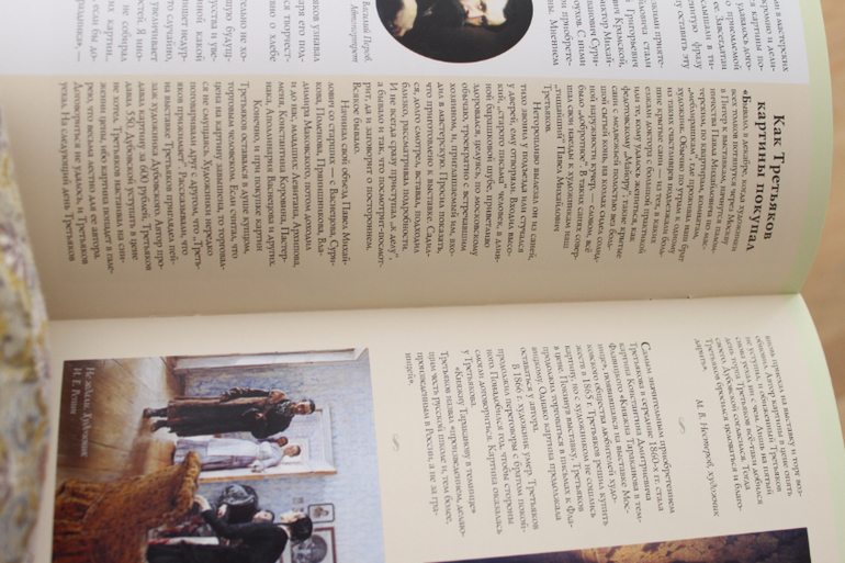 Третьяковка стала для нас родным домом. Прогулки Усачёва были выучены наизусть герои произведений стали родными. И первая встреча с ними в галерее была радостной и удивительной. Поражали размеры Богатырей или "Эльбрус. Лунная ночь" Куинджи, она оказалась просто маленькой. Пана Дима полюбил всей душей и портрет маленького мальчика Мики Серова. Я же пошла читать про Павла Третьякова и его удивительную коллекцию. И лица на портретах стали приобретать характеры и судьбы. Маленький Мика оказался искусствоведом, а девочка с другой картины картины - дочкой самого Третьякова... Писать можно много. Книгу "Третьяков и его знаменитая коллекция" купила потому, что в ней рассказывается история приобретения картин Еще одна небольшая книга "Павел Третьяков основатель великой галереи" не содержит описания коллекции, но рассказывает историю семьи Третьяковых . Про таких людей хочется читать и рассказывать детям. Не про живопись, но про Человека книга "Что придумал Шухов"