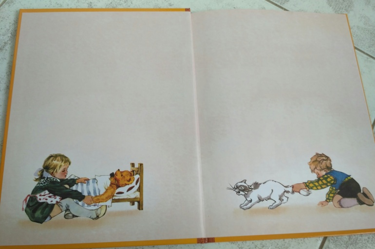 Книга формата А4, бумага - плотный белый офсет, крупный чёткий шрифт. Иллюстрации вполне милые. Единственное что лично мне не понравилось внешне - глянцевая обложка, не к месту она здесь.