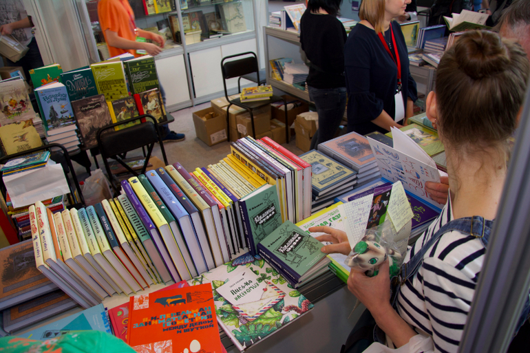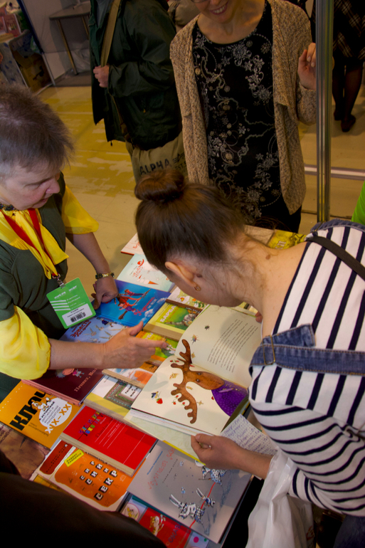 Мама предложила уже купить ребенку! Ребенку купили! Ребёнок, как барашек на веревочке, вместе с книжкой, не отрываясь, переместился за стол на соседнем стенде!