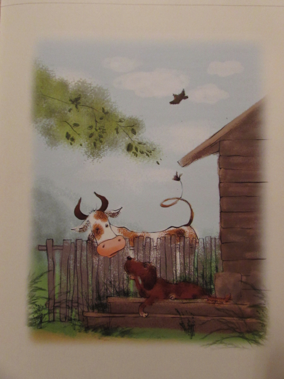 Он лежал на крылечке и переговаривался со знакомой коровой. Корова стояла за оградой. Ограда была низенькой и нисколько не мешала задушевной беседе.