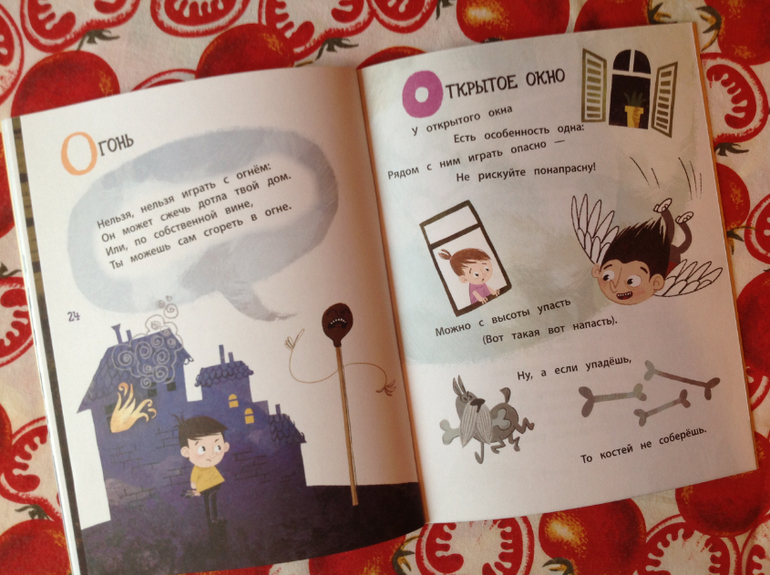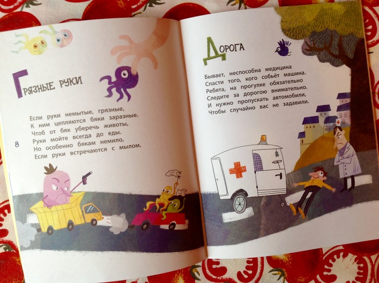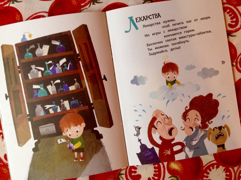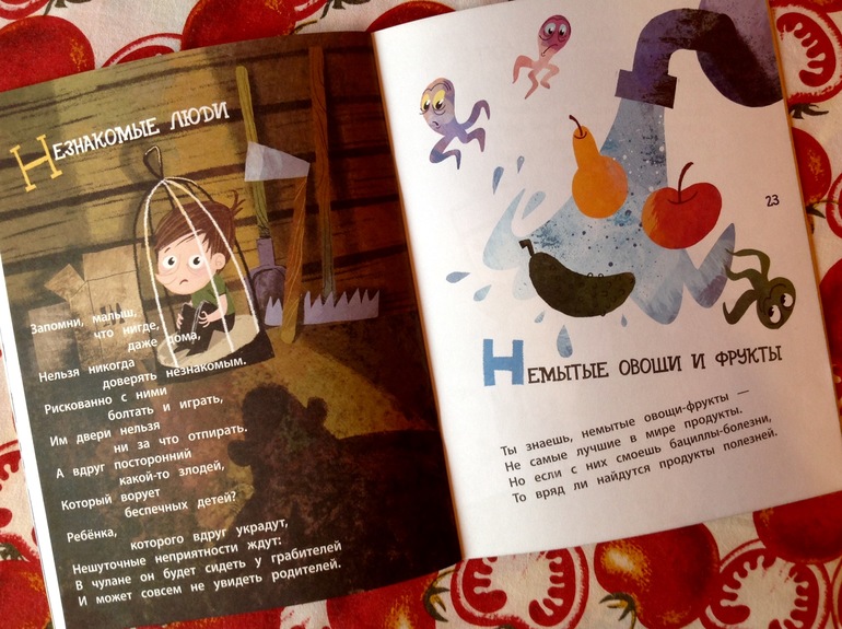 А над этим разворотом мы долго разговариваем и обсуждаем ... Это конечно нужно! Я довольна как именно здесь нарисовано. С чёрным юмором. Ребёнку не страшно, но он уже немного начинает задумываться!